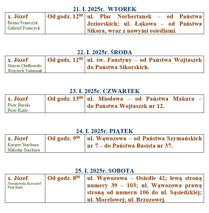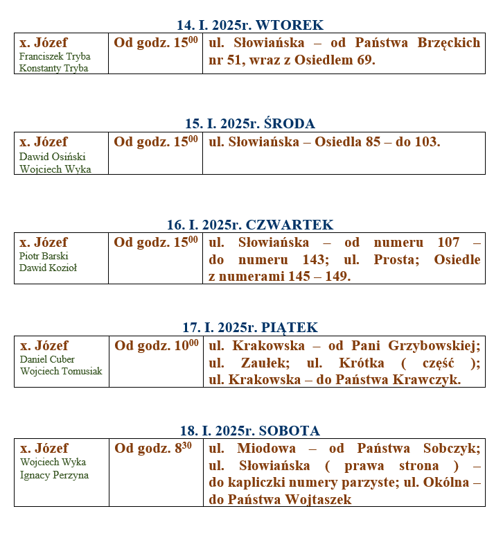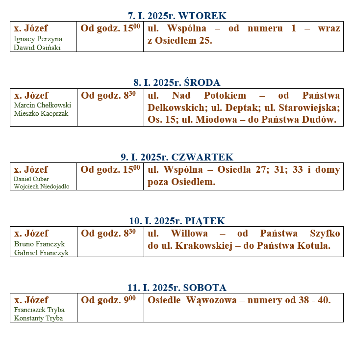 wizyta duszpasterska – kolęda 2024/2025